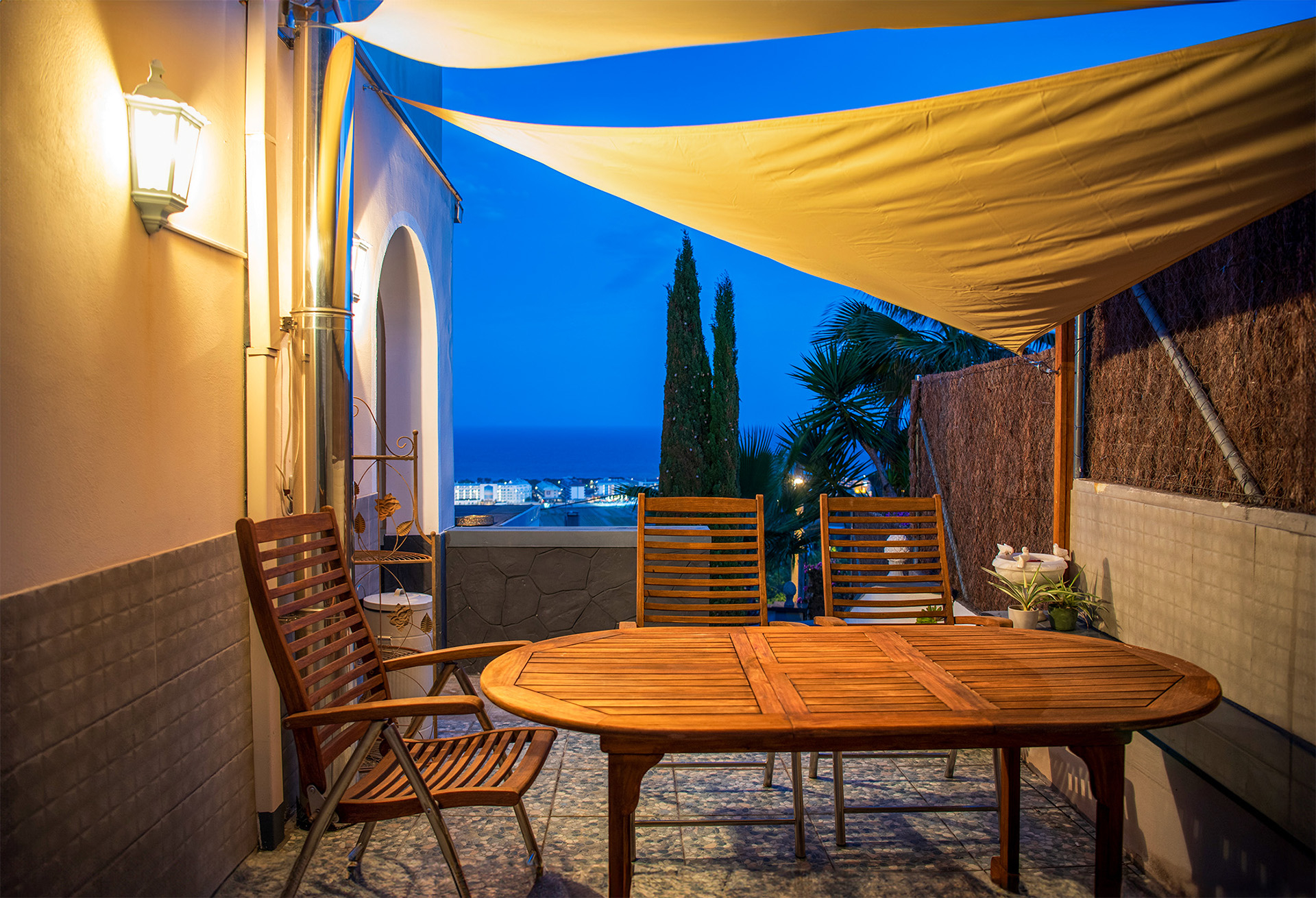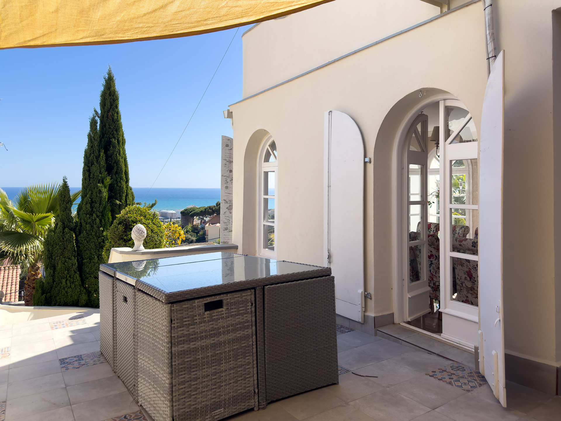 Directly off the dining room, this terrace is where summer evenings naturally end up. Open to the breeze, with the sea visible in the distance — an easy place for a long lunch or a dinner that stretches well past sunset, with the barbecue close at hand.