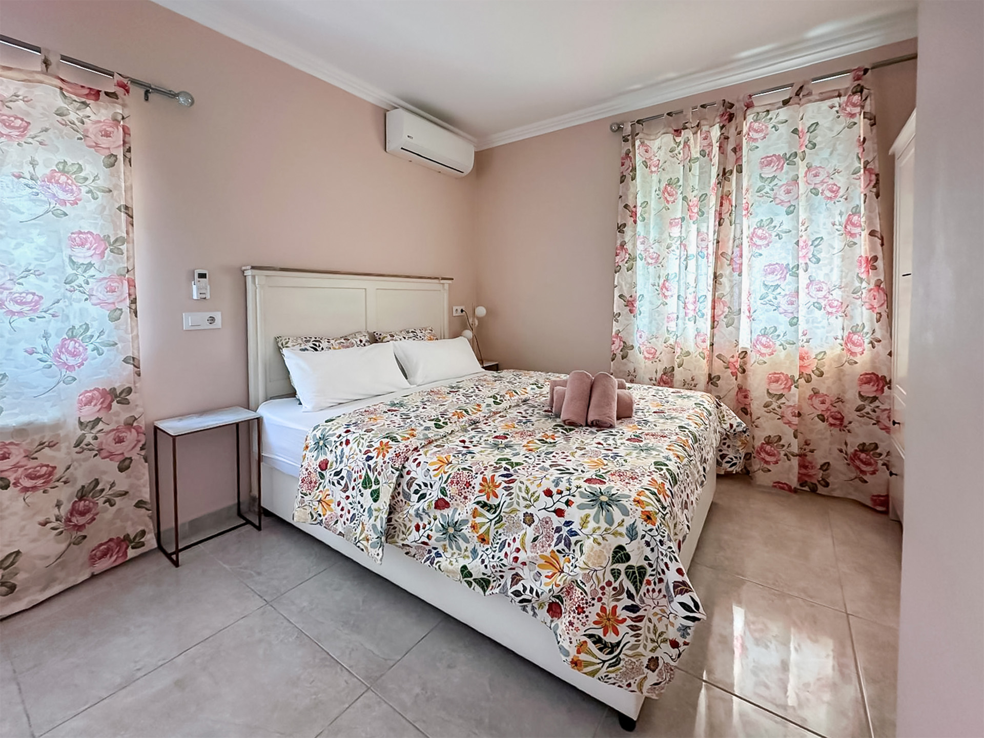 Master bedroom feels soft, quiet, and immediately restful, with sea light coming in through the window and a palette that keeps the room calm from morning to evening. It is a comfortable, private space with enough warmth and simplicity to feel easy from the very first night.