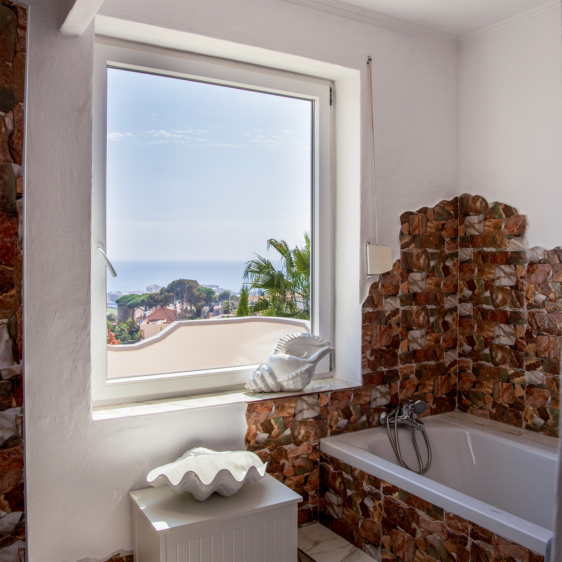 Bright and practical in layout, this bathroom is defined by one unusual detail: an open view towards the sea. It gives the room a quiet sense of character that stays with you.