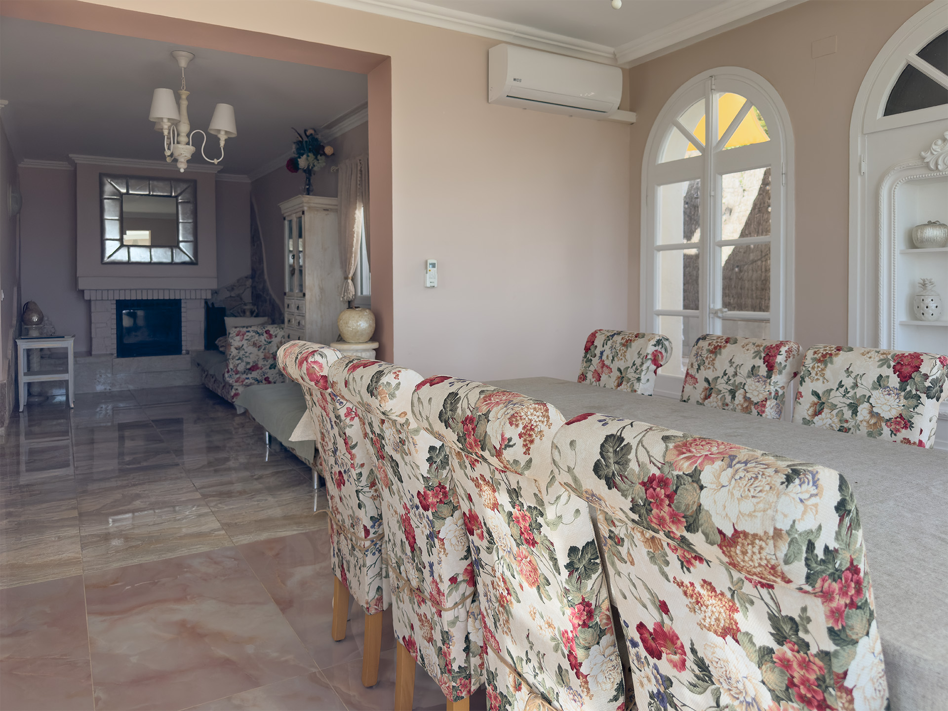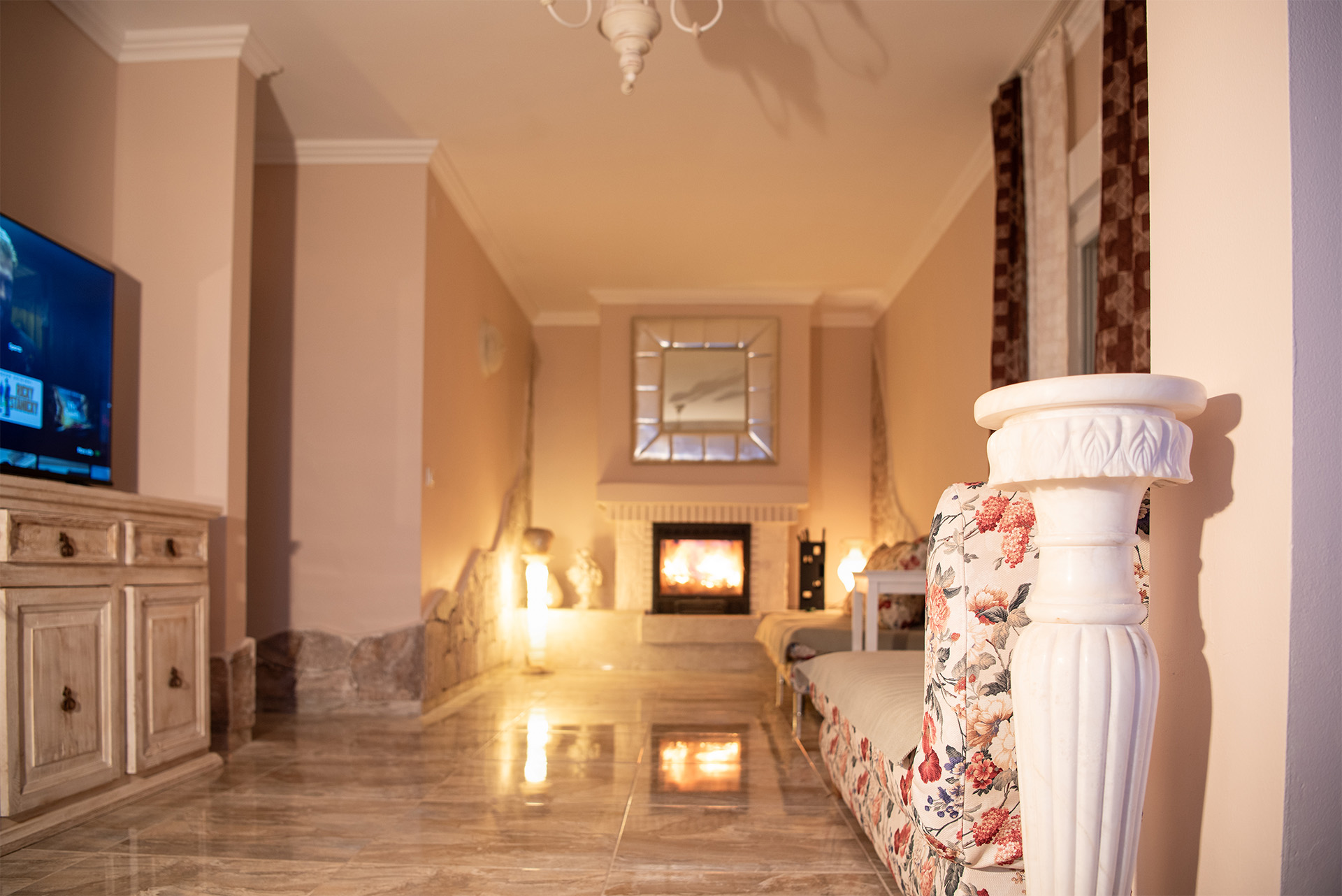 Warm, unhurried, and genuinely comfortable — the living room is the kind of space that settles you in quickly. In summer it catches the breeze and the changing light; in the cooler months, the fireplace becomes its quiet centre, turning evenings into something worth lingering over. A room that works in every season.