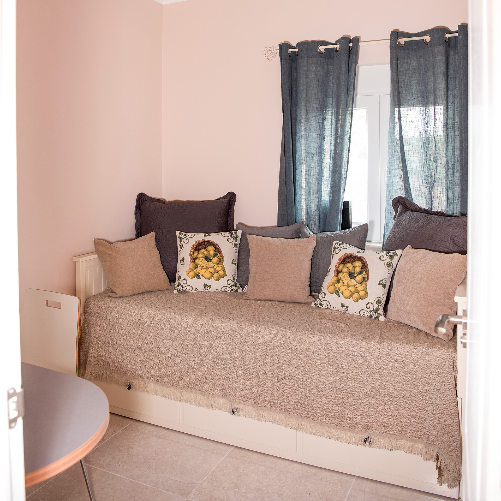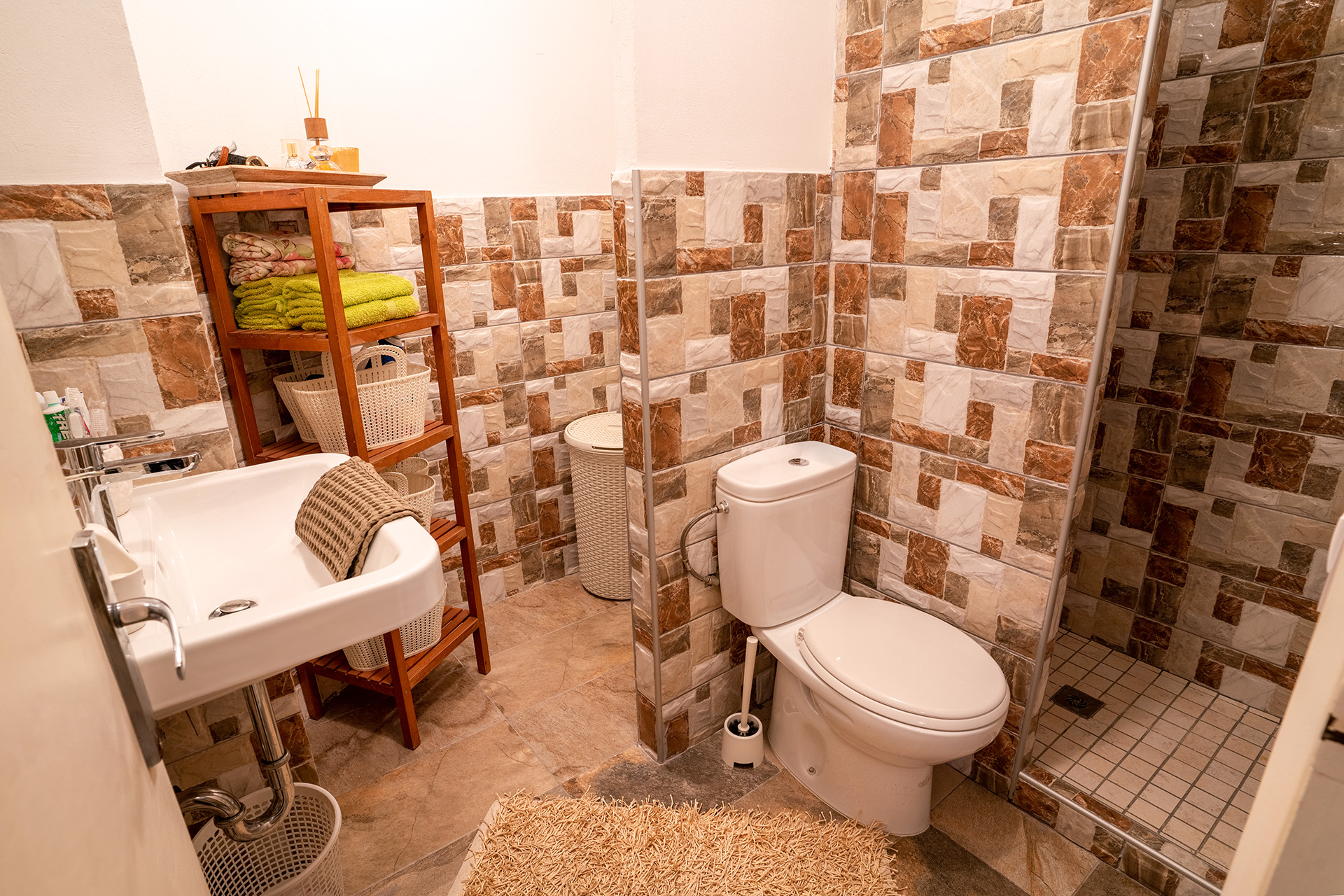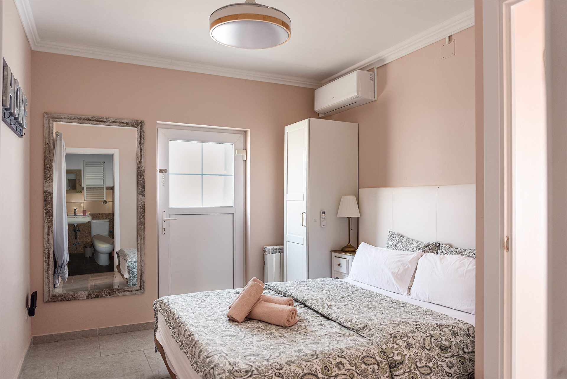Also set slightly apart, a few steps above the main level, this bedroom has its own shower room and a private terrace on the other side of the house. Similar in layout to its sister room, it offers the same privacy and independence, but with a different mood shaped by its own position, terrace, and light.